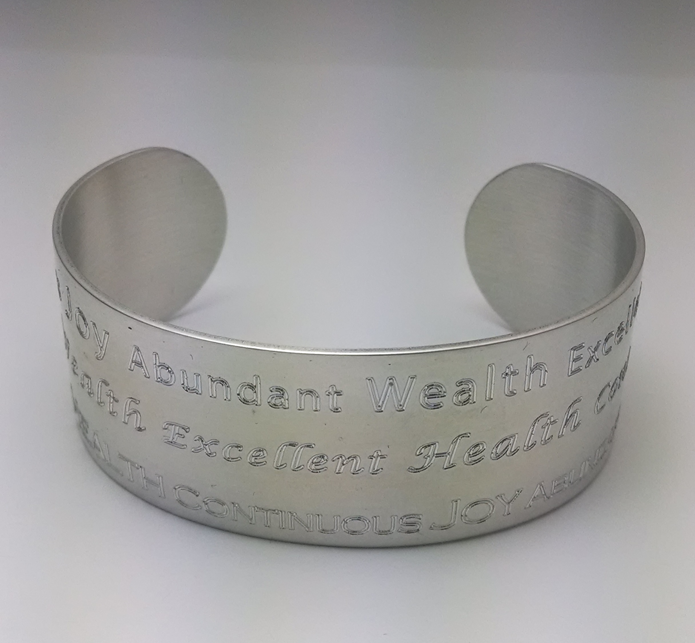 From the Sage Wise Words Collection comes a stunning engraved sterling silver cuff with the wise words, "Abundant Wealth, Excellent Health, Continuous Joy" repeated over and over. Because to get what you want, you must first know what you want.