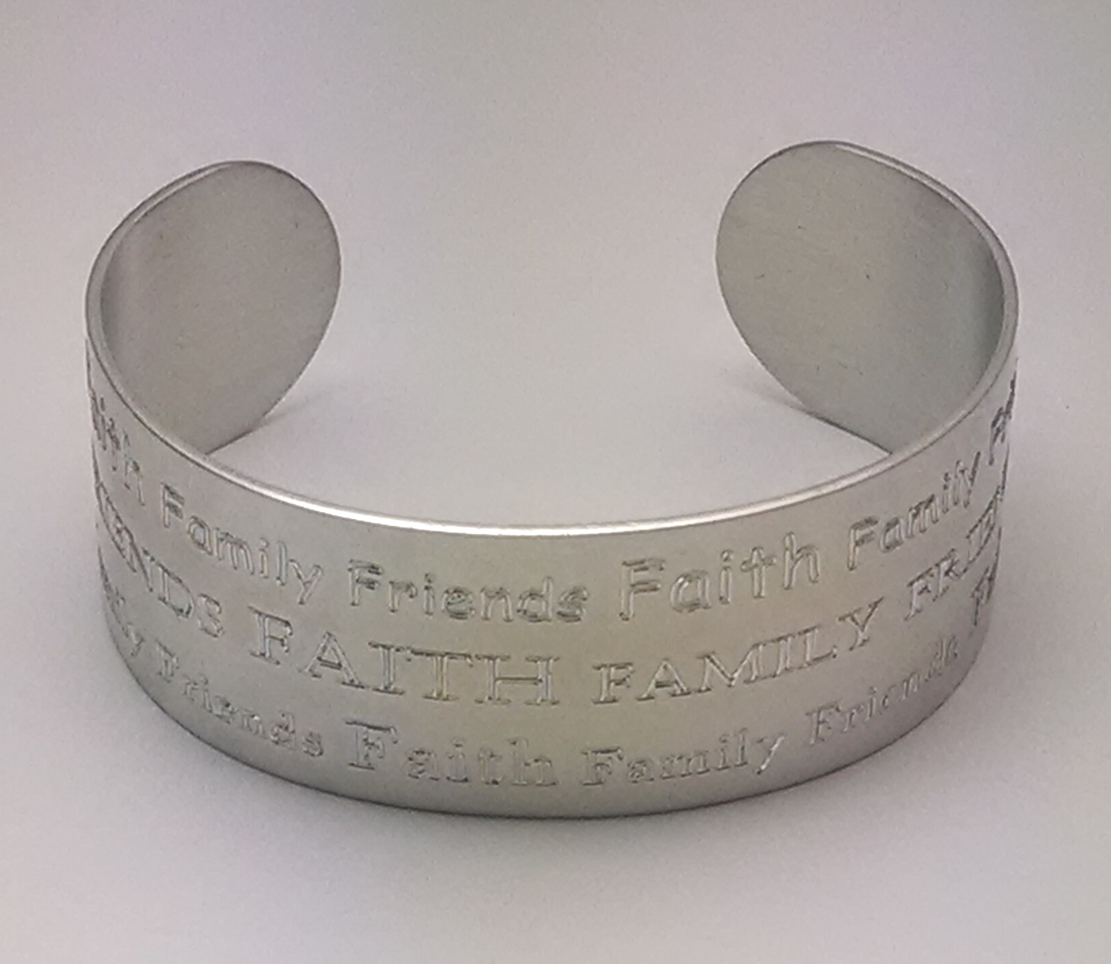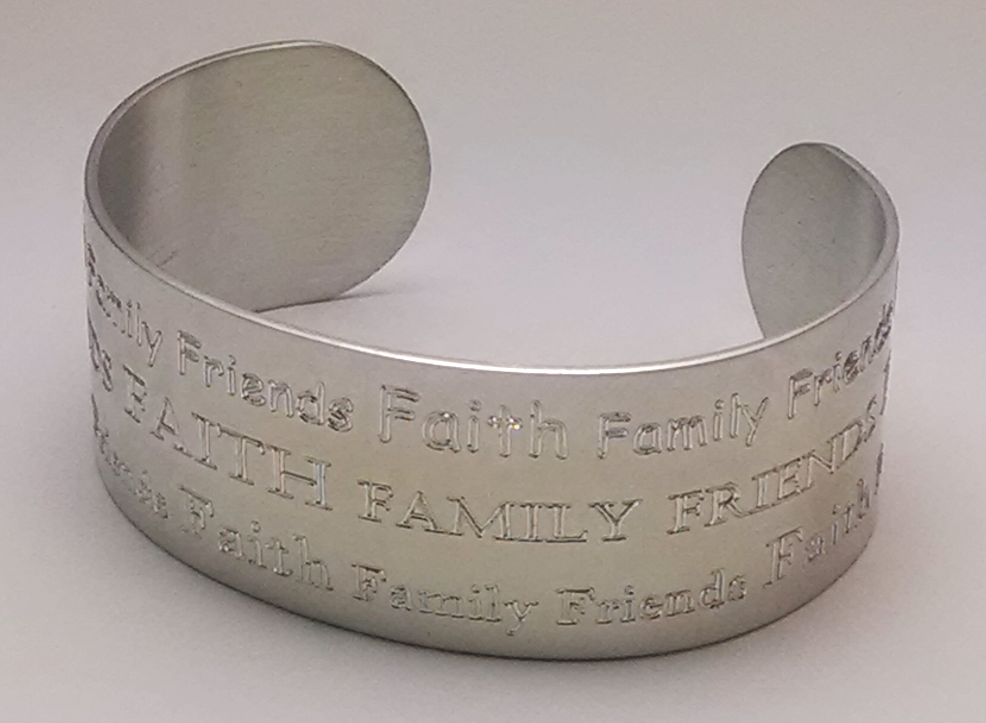 From the Sage Wise Words Collection comes a stunning engraved pewter cuff with the wise words, "Faith Family Friends" repeated over and over.